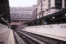 Before Holborn Viaduct closed, a new line between Blackfriars and the tunnel was constructed on a different alignment slightly to the east and at a lower elevation, providing the opportunity to build 600,000 square feet (56,000 m2) of office space above the station on a 4-acre (1.6 ha) site.[14] City Thameslink was built to replace Holborn Viaduct station. The total cost was estimated at between £360 and £450 million.[15][14] Because of a proposed routing for the second phase of the Jubilee line through the area, part of the station was built to allow for a future interchange.[16]