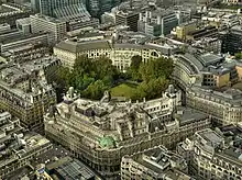 From top, left to right: Bank Junction; The Gherkin; Leadenhall Market; St Paul's Cathedral; London Stock Exchange; Barbican Estate; the Guildhall | |