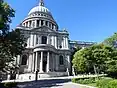 In 1708, Christopher Wren's masterpiece, St Paul's Cathedral, was completed on his birthday. The first service had been held on 2 December 1697, more than 10 years earlier. It replaced the original St Paul's, which had been completely destroyed in the Great Fire of London, and is considered to be one of the finest cathedrals in Britain and a fine example of Baroque architecture.