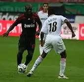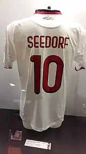 A world class midfielder, in addition to his fitness and athletic characteristics, as well as his ability to break down opposing plays and win back possession,[48][49] he was an elegant, creative player and an excellent dribbler, possessing outstanding technique, ball skills and vision, which enabled him to retain possession when under pressure and subsequently lay the ball off to an on-rushing teammate;[53] he was also an accurate passer and crosser of the ball.[48][50][54][55] Seedorf was also capable of scoring goals due to his powerful, accurate striking ability from distance with either foot;[48][49][56][57] furthermore, he was an effective free kick taker.[58] Despite his physical, energetic, and tenacious style of play, Seedorf was regarded as a correct player, and was sent off only two times in his entire career. In addition to his success and footballing skills, Seedorf has also been praised for his longevity as a footballer.[48]