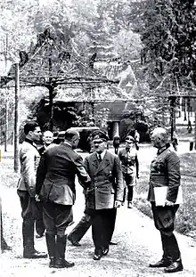 Stauffenberg's views of Hitler were conflicted during this period. He vacillated between a strong dislike of Hitler's policies and a respect for what he perceived to be Hitler's military acumen, before becoming more disassociated with the party after The Night of the Long Knives and Kristallnacht which he saw as proof Hitler had no intentions to pursue justice.[18] As a practicing Catholic, it was noted that the growing systematic ill-treatment of Jews and suppression of religion had offended Stauffenberg's strong sense of Catholic morality and justice.[19][20]