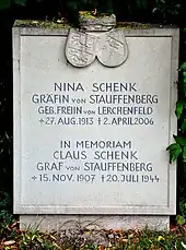Nina died at the age of 92 on 2 April 2006 at Kirchlauter near Bamberg and was buried there on 8 April. Berthold went on to become a general in West Germany's post-war Bundeswehr. Franz-Ludwig became a member of both the German and European parliaments, representing the Christian Social Union in Bavaria. In 2008, Konstanze von Schulthess-Rechberg wrote a best-selling book about her mother, Nina Schenk Gräfin von Stauffenberg.