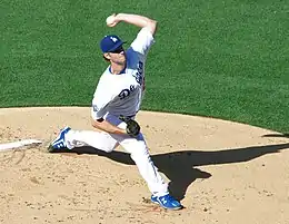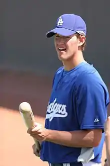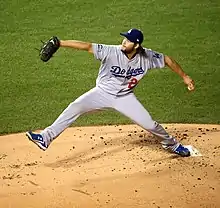 Clayton Edward Kershaw (born March 19, 1988) is an American professional baseball pitcher for the Los Angeles Dodgers of Major League Baseball (MLB). A left-handed starting pitcher, Kershaw has spent his entire major league career with the Dodgers since debuting in 2008. He is a ten-time All-Star, three-time National League (NL) Cy Young Award winner, the 2014 NL Most Valuable Player, and a World Series champion in 2020. His 2.48 career earned run average (ERA) and 1.00 walks plus hits per inning pitched rate (WHIP) are the lowest among starters in the live-ball era (minimum 1,000 innings pitched).[1][2] Kershaw has a career hits allowed per nine innings pitched average of 6.82, the third-lowest in MLB history.[3] He has been described for much of his career as the best pitcher in baseball, and one of the greatest pitchers of all time.[4]