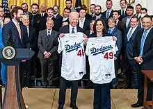 Kershaw was honored after the season with the player of the year awards from both The Sporting News[107] and Baseball America.[108] He won three awards at the Players Choice Awards including Outstanding NL Pitcher, Player of the Year and the Marvin Miller Man of the Year Award.[109] He also won his third (and second straight) Warren Spahn Award.[110] On November 12, he was awarded his third Cy Young Award in four seasons (a unanimous vote).[111] The following day, he was elected as the NL MVP, the first National League pitcher to win the award since Bob Gibson in 1968 and the first Dodgers player to win the award since Kirk Gibson in 1988.[112]