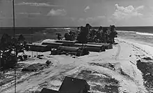 In April 1944, the USS Atlanta took observations of Clipperton while en route to Hawaii.[172][173] After an overflight of the island by planes from the USS Detroit and USS Nevada to ensure Clipperton was uninhabited,[174] the USS Argus departed San Francisco on 4 December 1944 with aerological specialists and personnel and was followed several days later by USS LST-563 with provisions, heavy equipment, and equipment for construction of a U.S. Navy weather station on the island.[175][176][177] The sailors at the weather station were armed in case of a possible Japanese attack in the region.[171][178] Landing on the island proved challenging. LST-563 grounded on the reef and the salvage ship USS Seize was brought in to help refloat the ship but it too was grounded. Finally, in January 1945, the USS Viking and USS Tenino were able to free the Seize and to offload equipment from LST-563 before it was abandoned.[175]