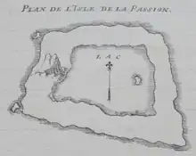 Although both San Pablo and Isla Médanos are considered to be possible sightings of Clipperton, the island was first charted by French merchant Michel Dubocage, commanding La Découverte, who arrived at the island on Good Friday, 3 April 1711; he was joined the following day by fellow ship captain Martin de Chassiron and La Princesse. The island was given the name Île de la Passion ('Passion Island') as the date of rediscovery fell within Passiontide. They drew up the first map of the island and claimed it for France.[126]