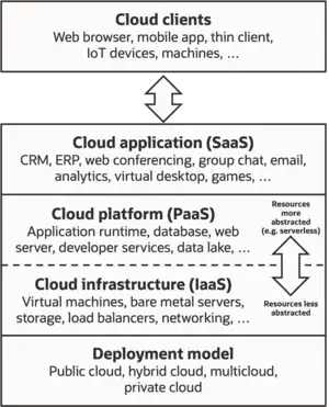 The service-oriented architecture (SOA) promotes the idea of "Everything as a Service" (EaaS or XaaS, or simply aAsS).[38] This concept is operationalized in cloud computing through several service models as defined by the National Institute of Standards and Technology (NIST). The three standard service models are Infrastructure as a Service (IaaS), Platform as a Service (PaaS), and Software as a Service (SaaS).[4] They are commonly depicted as layers in a stack, providing different levels of abstraction. However, these layers are not necessarily interdependent. For instance, SaaS can be delivered on bare metal, bypassing PaaS and IaaS, and a program can run directly on IaaS without being packaged as SaaS.