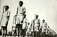 In Manipur, the party became a force to reckon with through the agrarian struggles led by Jananeta Irawat Singh. Singh had joined CPI in 1946.[35] At the 1951 congress of the party, 'People's Democracy' was substituted by 'National Democracy' as the main slogan of the party.[36]