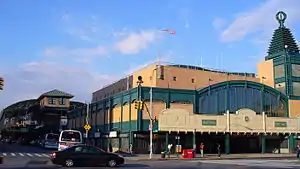 The MTA began evicting existing tenants from the station house in early 2001, including Philip's Candy, a candy store that had operated in the station building for seven decades.[42] Despite the economic effects of the September 11 attacks in 2001, the MTA awarded a $282 million construction contract the next month.[43] A full reconstruction started in November 2001 with the closure of the Sea Beach platform, which was used by the N train.[32] The Brighton and Culver Lines' platforms, hosting the F and Q services, were closed in September 2002, as was the adjacent West Eighth Street–New York Aquarium station.[44][45] At the time, the Coney Island Chamber of Commerce estimated that 75 percent of tourists to Coney Island traveled there via one of the two subway stations.[46]