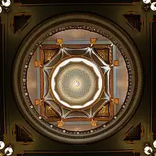 At the exterior base of the dome are 12 statues in six pairs representing Agriculture, Commerce, Education/Law, Force/War, Science/Justice, and Music.[3]