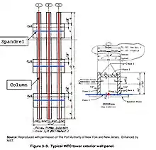 - William Baker; Johnathan Barnett; Christopher Marrion; Ronald Hamburger; James Milke; Harold Nelson (September 1, 2002). "Chapter 2. WTC 1 and WTC 2". World Trade Center Building Performance Study. FEMA. p. 33.