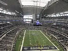 AT&T Stadium, formerly Cowboys Stadium, is a domed stadium with a retractable roof in Arlington, Texas. After failed negotiations to return the Cowboys to the Cotton Bowl, Jerry Jones along with the city of Arlington, Texas funded the stadium at a cost of $1.15 billion. It was completed on May 29, 2009, and seats 80,000, but is expandable to seat up to 100,000. AT&T Stadium is the largest domed stadium in the world.[18]