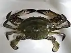 Portunus pelagicus (known as flower crabs, blue crabs, blue swimmer crabs, blue manna crabs or sand crabs) is a large crab found in the intertidal estuaries of the Indian and Pacific Oceans (Asian coasts) and the Middle-Eastern coast of the Mediterranean Sea. The name flower crab is used in east Asian countries while the latter names are used in Australia. The crabs are widely distributed in eastern Africa, Southeast Asia, Japan, Australia and New Zealand.