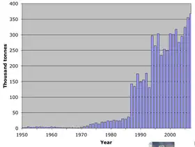 - "Global Aquaculture Production 1950-2008". FAO. Retrieved August 26, 2006.
