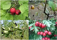 | Fruit of four different species of Crataegus (clockwise from top left: C. coccinea, C. punctata, C. ambigua and C. douglasii) | |
