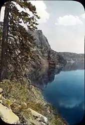 As the region lies within a national park area, collecting rocks within the vicinity is prohibited unless a permit is obtained.[44] The park's facilities lie at Rim Village, at the southern edge of the caldera.[41] Lodging and camping facilities open during the summer season between May and October.[45] No lodges, gas stations, or camping areas remain open from October through late May.[46] Popular activities within Crater Lake National Park include biking,[47] fishing,[48] cross-country skiing, and snowshoeing.[49]