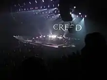 In June 2009, Creed performed with Marshall on bass for the first time in eight years on Sessions@AOL, showing the band playing four of their hits.[33] In addition, the band performed live on Fox & Friends on June 26, 2009.[34] Creed's reunion tour, with touring guitarist Eric Friedman, kicked off on August 6, 2009, and concluded on October 20. Full Circle, Creed's first album in eight years, came out on October 27, 2009. Stapp explained the title as follows: "It really defines and articulates, melody-wise and lyrically, what's happened with us. We've come full circle and it's a great place to be."[35] The first single from Full Circle, "Overcome", was posted on the band's official website on August 18, 2009, the same day the radio premiere started along with its release as a digital download on August 25. The second single, "Rain", was released to radio stations on September 23 and became available on October 6, 2009, as another digital download. The third single, "A Thousand Faces", was released in 2010.
