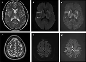 - Ukisu R, Kushihashi T, Kitanosono T, Fujisawa H, Takenaka H, Ohgiya Y, Gokan T, Munechika H (February 2005). "Serial diffusion-weighted MRI of Creutzfeldt-Jakob disease". AJR. American Journal of Roentgenology. 184 (2): 560–6. doi:10.2214/ajr.184.2.01840560. PMID 15671380.