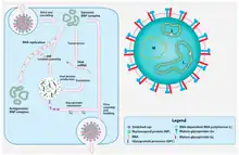 | Crimean–Congo hemorrhagic fever virus (CCHFV) virion and replication cycle. | |