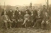 Kallay tried to unify all Bosnians into a single nation of Bosniaks, but he failed to do so after Bosnians created their national political parties.[29] Before the annexation of Bosnia and Herzegovina in 1908, the Croat People's Union (HNZ) become a political party; its ideology was very similar to that of the Croatian-Serbian Coalition in Croatia. In 1909, Stadler opposed such a policy and founded a new political party, the Croat Catholic Association (HKU), an opponent of the secular HNZ. HKU emphasized clerical ideals and religious exclusivity.[32] However, Bosnian Croats mostly supported the secular nationalist policy of the HNZ.[33] HNZ and Muslim Nation Organization formed a coalition that ruled the country from 1911 until the dissolution of the Bosnian parliament in 1914.[34]
