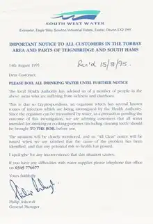 - "Boil water warning 'precaution'". BBC News. 2 September 2008.