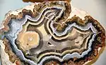 Rounded, finely banded deposits with irregular concentric protuberances | agate, baryte, sphalerite | ||