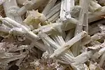 Radiating outward from a central point without producing a star (crystals are generally separated and have different lengths). | aenigmatite, atacamite, epidote, pyrophyllite, stibnite | ||