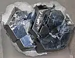 Outer portions of cubes grow faster than inner portions, creating a concavity similar to that of a hopper | bismuth (artificial), halite, galena | ||