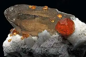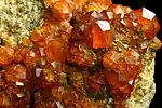 Icositetrahedron-shaped, 24-faced | analcime, spessartine | ||