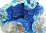 Aggregate of crystals coating a surface or cavity, usually found in geodes and some fossils | azurite, celestine, calcite, uvarovite, malachite, quartz | ||