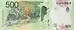 | $500 | Green | Manuel Belgrano and María Remedios del Valle | Soldiers pledging allegiance to the Argentine flag in 1812 | ![]() ![]() |