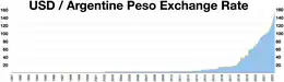 The official exchange rate for the United States dollar valued the peso convertible de curso legal at one US dollar at its introduction in 1992, which was maintained until early 2002. Afterwards, it went from a 3:1 exchange rate with the US dollar in 2003 to 250:1 in early 2023. On 27 September 2023, the official wholesale government exchange rate was determined at ARS$350 to one US dollar;[3] the unregulated rate valued the peso at ARS$768 to one US dollar.[4] There are sometimes multiple official exchange rates for different trade purposes.