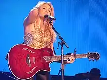 In order to promote the album and MTV Unplugged, Shakira embarked on the Tour Anfibio which began on 17 March 2000 in Panama City, Panama, and ended on 12 May 2000 in Buenos Aires, Argentina.[85] It was sponsored by Nokia. The name "anfibio" was chosen by Shakira for its resemblance with her: earthy, viscerally connected to the water element, capable of adapting and willing to undergo metamorphosis.[86] Shakira said about the tour's name: "You'll have to find out. It's an invitation for you to watch the show and find out. It has nothing to do with past performances. You'll see an evolved and renewed Shakira. It's a spectacle of many transformations that will prevent the public from getting bored".[87] The tour's setlist consisted of songs from her albums Pies Descalzos and Dónde Están los Ladrones?[88] In addition, she included an a capella song, "Alfonsina y el Mar", originally by Argentine folk singer Mercedes Sosa.[89] Criticism of the tour included the high ticket prices, overselling of tickets in Guatemala, which according to the press could have caused a tragedy, the long delays at the start of the show and its short duration, and the accusation of the use of pre-recorded music in Puerto Rico. Despite the criticism, the tour was a financial success, earning Shakira a position in the list of Top 50 Tours published in the summer of 2000 by Pollstar magazine.[90]