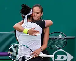 However, she crashed out in her opening-round match in Dubai to Alizé Cornet.[90] She bounced back at the St. Petersburg Ladies' Trophy, halting the winning streak of rising star Clara Tauson in the first round.[91] Kasatkina then fought hard for a three-set win over Aliaksandra Sasnovich, who served for the match.[92] Back-to-back comeback wins came over compatriots Veronika Kudermetova[93] and Svetlana Kuznetsova.[94] She then defeated wildcard Margarita Gasparyan in the final after Gasparyan was forced to retire early in the second set.[95] This was Kasatkina's second title at home and this also made her the first two-time champion of the 2021 season, moving herself back into the top 50 for the first time since October 2019.[96]