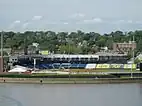 Although several minor tornadoes have occurred, no devastating tornado has ever touched down in Davenport.[31] Flooding, however, is often a problem in Davenport due to the lack of a flood wall. During the Great Flood of 1993, the water crested at 22.63 feet (6.90 m) on July 9.[32] This is nearly 8 feet (2.4 m) above the 14.9-foot (4.5 m) flood stage. Major flooding in Davenport causes many problems. Roads in and around the downtown area, including U.S. Route 67, are closed and cause increased traffic on other city roads. The effects of major flooding can be long-lasting. For example, during the 2008 flooding, Credit Island in the city's southwest corner remained closed for 5½ months while crews worked on cleaning up damage and removing river debris.[33] Duck Creek, a stream situated in Bettendorf and Davenport, is also vulnerable to flash flooding. Severe thunderstorms on June 16, 1990, created heavy flash flooding in Bettendorf and Davenport that killed four people.[34] Another major flood happened on June 12, 2008, when severe thunderstorms caused Duck Creek to overflow its banks and flood properties and nearby streets (see Iowa flood of 2008).[35]