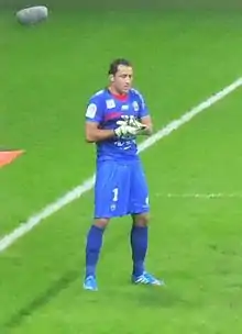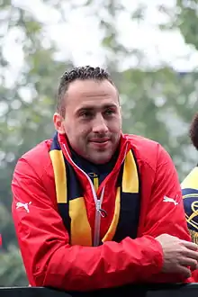 An agile, athletic, and acrobatic shot-stopper,[40][41][42] Ospina is also known for his reflexes[43][44][45] and his technical ability with his feet,[31][40][46] as well as his distribution and ability to produce accurate throws,[31][40][47] which allows him to play the ball out from the back and start attacks.[48][49] Considered by pundits to be a promising goalkeeper in his youth,[42] his former Nice manager, Frédéric Antonetti, once described him as an "international-standard goalkeeper," also stating: "He has everything you need to be a top goalkeeper. He's good in the air and he's good on the ground. He has that little extra something to be a champion. Hugo Lloris was an international-standard goalkeeper; so is David."[5][40] He is also known for his reserved character and calm demeanour on the pitch.[40] Although he was criticised in the media during his earlier career for being prone to rash errors, while his ability to command his area and decision-making about when to come off his line also came into question, he was able to improve in these areas as his career progressed due to his work-rate, in particular in his speed when rushing off his line and getting to ground to smother the ball – which makes him effective in one on one situations –, or when dealing with crosses;[40][44][45][47] as such, he has been described by journalists as a "sweeper keeper," due to his playing style and ability to rush out of goal.[50] However, despite his all-round improvement as he entered his prime, his tendency to commit errors has persisted, which has been a source of scrutiny from pundits.[51] Standing at 1.83 m (6 ft), Ospina is not particularly tall for a goalkeeper;[52] as such, his lack of height has occasionally limited him in the air at times, despite his bravery.[40][53] He has also been accused of being inconsistent and unreliable in the media,[54][55] despite his excellent and consistent performances at international level.[44] Consequently, critical reception of Ospina has been divided; while his former Arsenal manager Wenger labelled him as the "best goalkeeper in the Premier League" in 2015,[56] and as "a world-class goalkeeper" in 2016,[57] Michael Cummings of Bleacher Report instead stated in 2015 that "Ospina is not a top-class goalkeeper," despite performing well for Arsenal since earning the starting role over Szczęsny earlier that year.[58] Former Arsenal goalkeeper Bob Wilson instead described him as a "solid keeper" in 2018.[59]