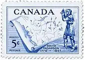 Thompson was the subject of a 1964 National Film Board of Canada short film David Thompson: The Great Mapmaker ,[38] as well as the BBC2 programme Ray Mears' Northern Wilderness (Episode 5), broadcast in November 2009.[39] He's also the subject of 2010 KSPS-TV film Uncharted Territory: David Thompson on the Columbia Plateau.[40]