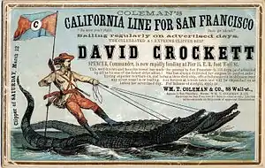 Crockett became famous during his lifetime for larger-than-life exploits popularized by stage plays and almanacs. After his death, he continued to be credited with acts of mythical proportion. These led in the 20th century to television and film portrayals, and he became one of the best-known American folk heroes.[5][6]