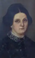 The newlyweds settled on land near Polly's parents, and their first child, John Wesley Crockett, who became a United States Congressman,[47] was born July 10, 1807.[48] Their second child, William Finley Crockett, was born November 25, 1808.[48] In October 1811, the family relocated to Lincoln County.[49] Their third child Margaret Finley (Polly) Crockett was born on November 25, 1812.[50] The Crocketts then moved to Franklin County in 1813. He named the new home on Beans Creek "Kentuck". [51] His wife died in March 1815,[52] and Crockett asked his brother John and his sister-in-law to move in with him to help care for the children.[53] That same year, he married the widow Elizabeth Patton, who had a daughter, Margaret Ann, and a son, George.[54] David and Elizabeth's son, Robert Patton, was born September 16, 1816.[55] Daughter Rebecca Elvira was born December 25, 1818.[56] Daughter Matilda was born August 2, 1821.[57]