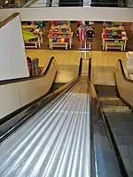 The airfield scenes were filmed at the Harold W. Brown Memorial Airfield in Monroeville,[17] an airport located about two miles from the mall that is still in use.[18] The scenes of the group's hideout at the top of the mall were filmed on a set built at Romero's then-production company, The Latent Image.[19] The elevator shaft was located there as well, as no such area of the mall actually existed. The gun store was also not located in the mall—for filming, the crew used Firearms Unlimited, a shop that existed in the East Liberty district of Pittsburgh at the time. The police dock scene was filmed in downtown Pittsburgh right next the Monongahela River at 1 S. 6th St. The building, landing pad, and pumps are long gone, and the location is now an outdoor art gallery called The Color Park. The truck yard scene was filmed at the B&P Motor Express Co. which is now a First Student school bus company in Irwin, PA, about 22 minutes from the Monroeville Mall.