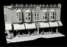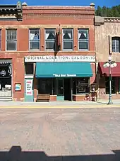 In 1961, the entire town was designated a National Historic Landmark, for its well-preserved collection of late 19th-century frontier architecture. Most of the town's buildings were built before 1900, with only modest subsequent development.[19] The town's population continued to decline through the 1960s and 1970s.[20] Interstate 90 bypassed Deadwood in 1964, diverting travelers and businesses. On May 21, 1980, a raid by county, state, and federal agents on the town's three remaining brothels—"The White Door", "Pam's Purple Door" and "Dixie's Green Door"—accomplished, as one reporter put it, "what Marshal Hickok never would have done",[21] and the houses of prostitution were padlocked.[20] A fire in December 1987 destroyed the historic Syndicate Building and a neighboring structure.[20]