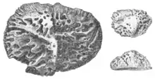 In 1858, geologist Ebenezer Emmons described two large fossil teeth found in Bladen County, North Carolina. Emmons assigned these teeth to Polyptychodon, which he then believed to be "a genus of crocodilian reptiles".[33] Later discoveries showed that Polyptychodon was actually a pliosaur, a type of marine reptile.[14] The teeth described by Emmons were thick, slightly curved, and covered with vertically grooved enamel; he assigned them a new species name, P. rugosus.[33] Although not initially recognized as such, these teeth were probably the first Deinosuchus remains to be scientifically described. Another large tooth that likely came from Deinosuchus, discovered in neighboring Sampson County, was named Polydectes biturgidus by Edward Drinker Cope in 1869.[14]