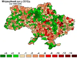 Due to mass emigration and destruction of property caused by Russian Invasion of Ukraine, the country's birth rate has declined significantly, and was 28% lower in the first six months of 2023 compared to the same period in 2021.[33] However, there could very well be a small, but meaningful increase in births, with the fertility rate possibly increasing to 1.60 children per women, even higher than the peak of 1.53 seen in 2012.[34]