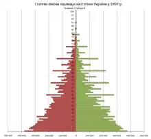 The figures below refer to the nine governorates of the Russian Empire (Volhynia, Katerynoslav, Kyiv, Podilia, Poltava, Tauryda, Kharkiv, Kherson and Chernihiv) with a Ukrainian majority.[39]