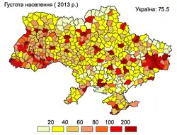 According to the United Nations, Ukraine has a population of 36,744,636 as of 2023. On 27 July 2023, Reuters reported that due to the refugee outpouring into Western Europe, the population of Ukraine has decreased to 28 million.[5] This is a steep decline from 2020, when it had a population of almost 44 million people.[6] This is in large part due to the ongoing Ukrainian refugee crisis and loss of territory caused by Russia's invasion of Ukraine. The most recent (and only) census of a post-Soviet Ukraine occurred over 20 years ago, in 2001. Thus, much of the information presented here could be inaccurate and/or outdated.