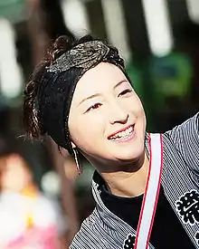 Japanese funerals are highly ritualized affairs which are generally—though not always—conducted in accordance with Buddhist rites.[2] In preparation for the funeral, the body is washed and the orifices are blocked with cotton or gauze. The encoffining ritual (called nōkan), as depicted in Departures, is rarely performed, and even then only in rural areas.[3] This ceremony is not standardized, but generally involves professional morticians (納棺師, nōkanshi)[lower-alpha 2] ritually preparing the body, dressing the dead in white, and sometimes applying make-up. The body is then put on dry ice in a casket, along with personal possessions and items deemed necessary for the trip to the afterlife.[4]