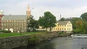 The Derwent Valley is considered the birthplace of the factory system.[21] The machines developed in the Derwent Valley such as the water frame allowed continuous production.[9] Richard Arkwright's Cromford Mill and the associated workers' settlement provided a template for industrial communities, not just in the valley but internationally. The reason a settlement was built contemporaneously with Cromford Mill was to provide housing for the workers; the only way to secure the labour the mill required was if homes were provided for the labourers and their families. The success of Arkwright's model lead to other industrialists copying him. Entrepreneurs such as Peter Nightingale, Jedediah Strutt and Thomas Evans founded the settlements of Belper, Milford, and Darley Abbey within the Derwent Valley for their employees. As well as the economic standpoint of ensuring a supply of labour, the industrialists were also concerned for their employees and families and acted out of a sense of paternalism.[33]