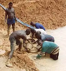 By mid 1954 the author Ian Fleming had published two novels—Casino Royale (1953) and Live and Let Die (1954)—and had a third, Moonraker, being edited and prepared for production.[2][3][lower-alpha 2] That year he read a story in The Sunday Times about diamond smuggling from Sierra Leone.[5] He considered this story as the possible basis for a new novel and, through an old school friend, he engineered a meeting with Sir Percy Sillitoe, the ex-head of MI5, then working in a security capacity for the diamond-trading company De Beers.[5][6] The material Fleming gathered was used in both Diamonds Are Forever and The Diamond Smugglers, a non-fiction book published in 1957.[5][lower-alpha 3]