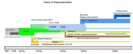Dispensationalism is a theological framework based on the concept that God has acted in different ways in dealing with his chosen people throughout human history. These periods are referred to as dispensations.[2][1]: 19