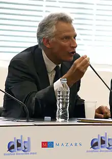 After being replaced by François Fillon as prime minister, De Villepin was indicted in connection with the Clearstream affair,[2][3] but was subsequently cleared of charges of complicity in allowing false accusations to proceed against presidential rival Nicolas Sarkozy regarding bribes paid on a sale of warships to Taiwan.[4] De Villepin enjoyed a modest return to public favour for his public critique of President Sarkozy's style of "imperial rule."[5]